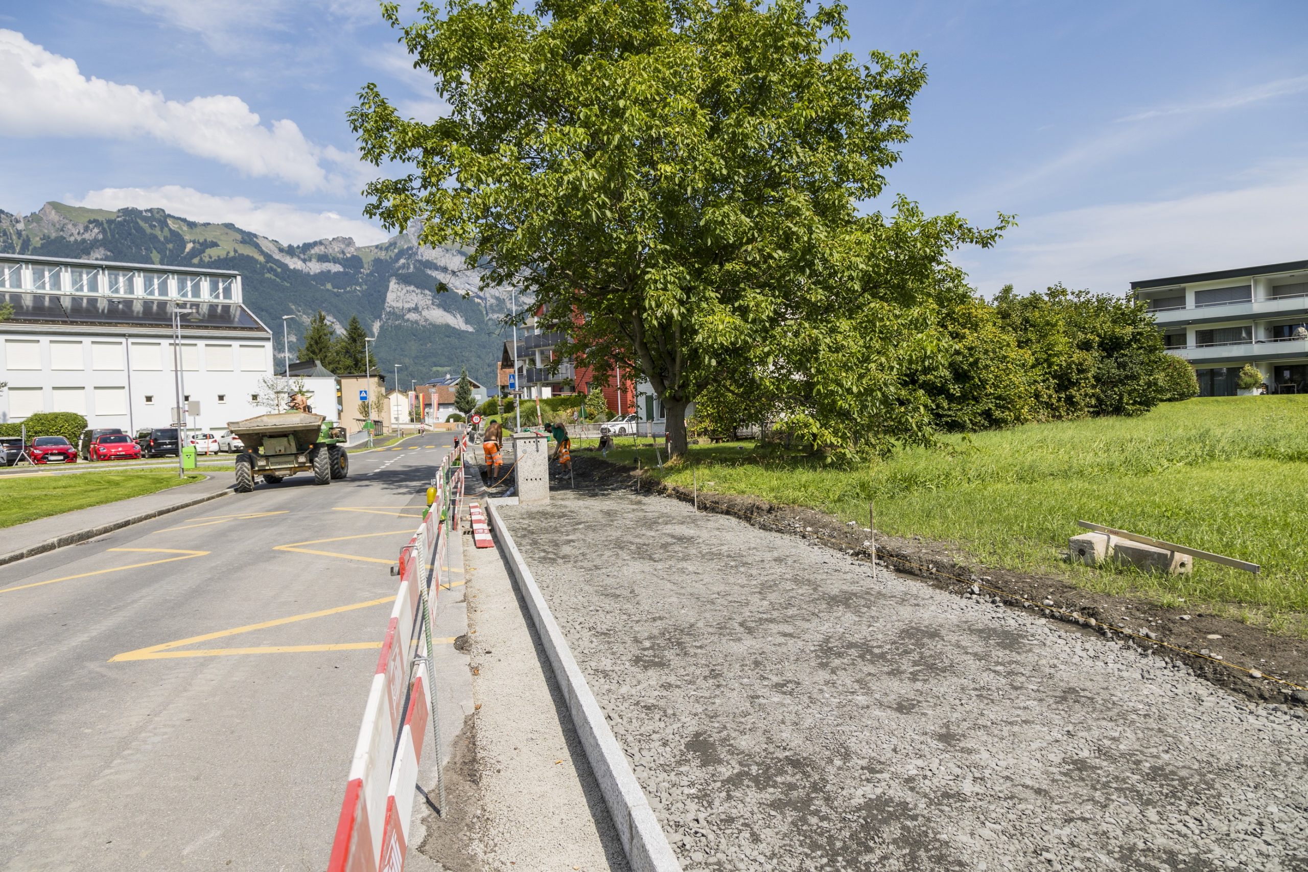 Im Zuge der Bauarbeiten an der Landstrasse wird auch die Bushaltestelle Kreuzstrasse verlegt und mit einem Wartebereich und sicheren Ein- und Ausstieg neugestaltet.