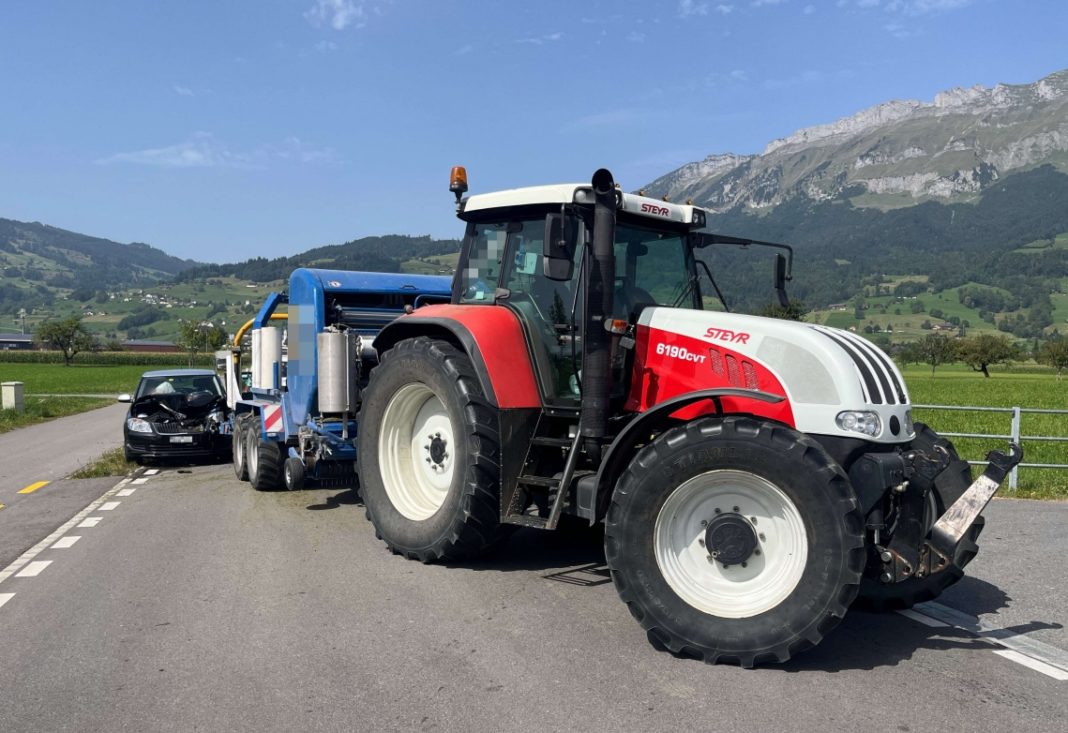Ein 26-jähriger Mann fuhr mit seiner Fahrzeugkombination aus Traktor und Ballenpresse von Gams in Richtung Haag. Er beabsichtigte nach links in die Ruschstrasse abzubiegen. Hinter ihm fuhr ein 34-jähriger Mann mit seinem Auto in dieselbe Richtung und beabsichtigte geradeaus weiterzufahren. Als der 26-Jährige begann, nach links abzubiegen, startete der 45-Jährige ein Überholmanöver. Nachdem beide Männer ihre Fahrzeuge abbremsten und auf die Normalspur zurückzogen, kam es zu einem Auffahrunfall der beiden. Der 45-Jährige wurde dabei leicht verletzt. Er wurde vom Rettungsdienst vor Ort versorgt. Bei dem Unfall entstand Sachschaden in Höhe von über 25’000 Franken.