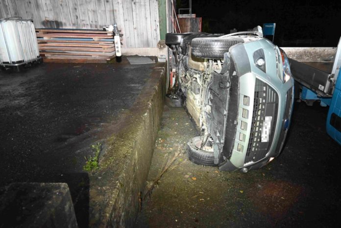 Am Mittwoch, (16.08.2023), um 21 Uhr, ist ein 23-jähriger Mann beim Wenden seines Autos im Weiler Glan verunfallt. Das Auto fiel über eine Stützmauer. Der Fahrer wurde als fahrunfähig beurteilt. Er musste den Führerausweis abgeben.