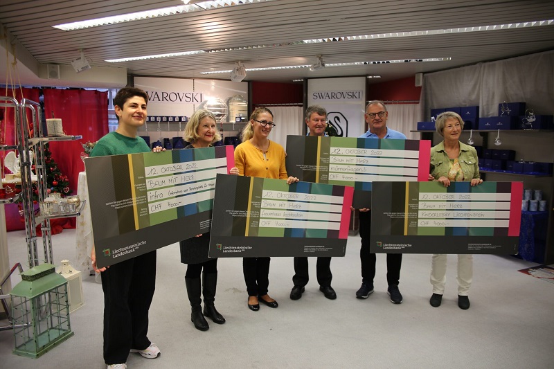 Die Aktion baummitherz.li (sammeln-schmücken-spenden) ist wieder erfolgreich durchgeführt worden und kann den Erlös von CHF 16‘000.00 an 4 soziale Institutionen in Liechtenstein überreichen. Dieses Jahr wird der Betrag gesplittet und es erhalten 4 soziale Institutionen in Liechtenstein je CHF 4000.00.