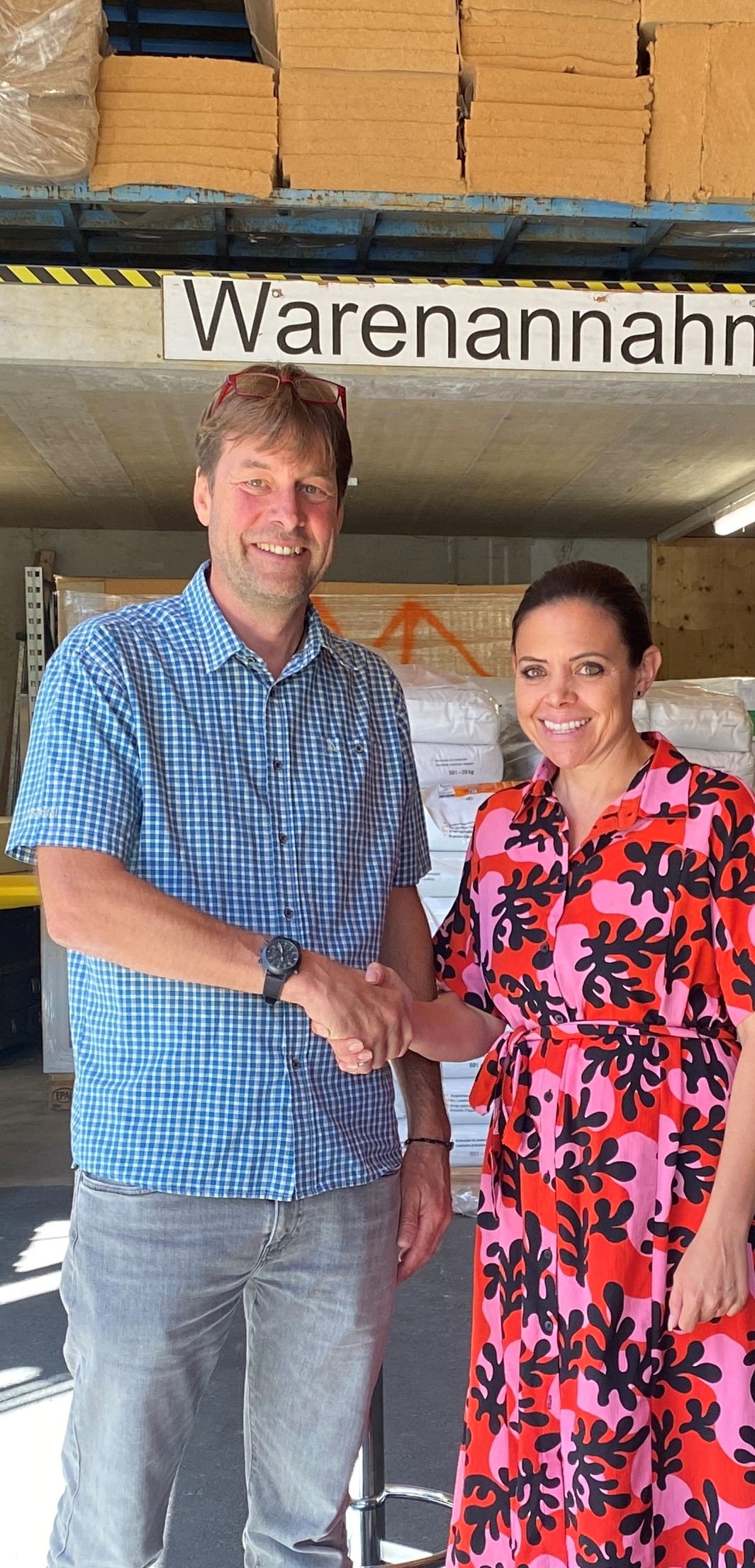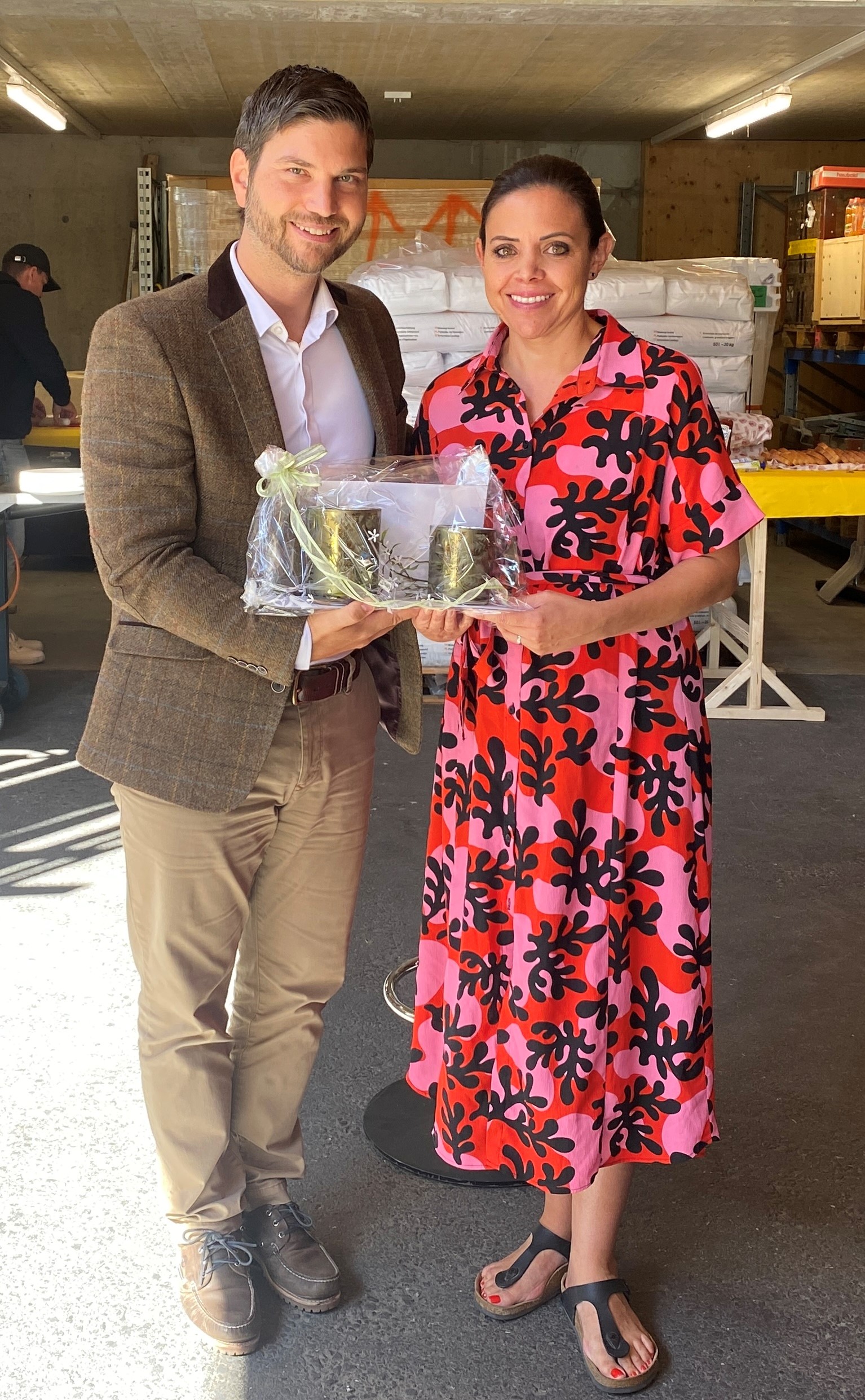 Gemeindevorsteher Johannes Hasler und Judith Hoop bei der Verabschiedung als Obfrau.
