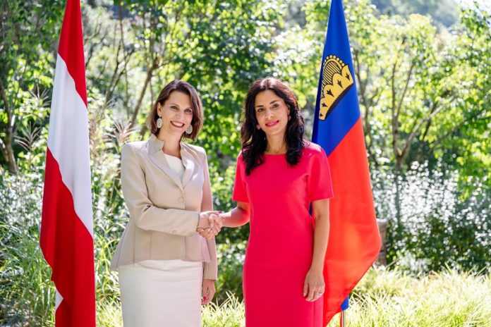 Vaduz (ots) – Am Montag, 4. September empfing S.D. Erbprinz Alois von und zu Liechtenstein in Stellvertretung von S.D. Fürst Hans-Adam II. Bundesministerin Karoline Edtstadler zur Ordensverleihung auf Schloss Vaduz. Teil des Besuchs in Vaduz war auch ein Arbeitsgespräch mit Aussenministerin Dominique Hasler sowie ein Höflichkeitsbesuch bei Regierungschef Daniel Risch. Im Rahmen ihres Gesprächs tauschten sich Regierungsrätin Hasler und Bundesministerin Edtstadler über die Europapolitik der beiden Nachbarstaaten aus.