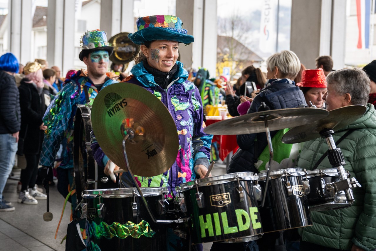 Die Guggenmusiken Röfischrenzer und Plunderhüsler heizten dem Schaulustigen mächtig ein und gaben einen Vorgeschmack auf die kommende 5. Jahreszeit. Alle Bilder: Michael Zanghellini