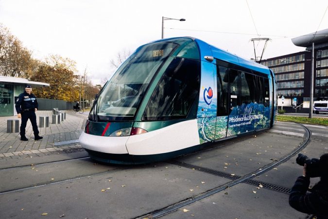 Nach diesen Programmpunkten im Palais de l’Europe erfolgte die Einweihung des Liechtenstein-Trams, welches nun für ein Jahr im öffentlichen Verkehrsnetz der Stadt Strassburg eingesetzt wird. Bedruckt ist das Tram mit dem offiziellen Vorsitzlogo Liechtensteins, sowie Abbildungen von Schloss Vaduz und Liechtenstein aus der Vogelperspektive.