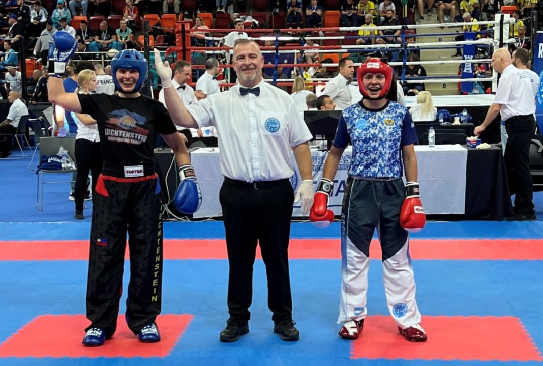 Die Argentinierin startete furios in die erste Runde und erkämpfte sich schnell einen Vorsprung. Büchel blieb ruhig und setzte saubere Fäuste zum Kopf und punktete schrittweise. In der zweiten Runde änderte Team Liechtenstein die Taktik und wurden offensiver. Büchel gewinnt nun immer mehr Schlagabtäusche und erzielt wichtige Punkte. In der dritten Runde übernahm die Athletin vom Chikudo Martial Arts das Zepter und dominierte den Kampf. Mit klarem Punktevorsprung gewinnt Milena Büchel mit 3:0 gegen Argentinien an ihrem allerersten Kampf an einer Weltmeisterschaft überhaupt. Sie trifft nun im Viertelfinale auf Marta Campo Gonzalez aus Spanien.