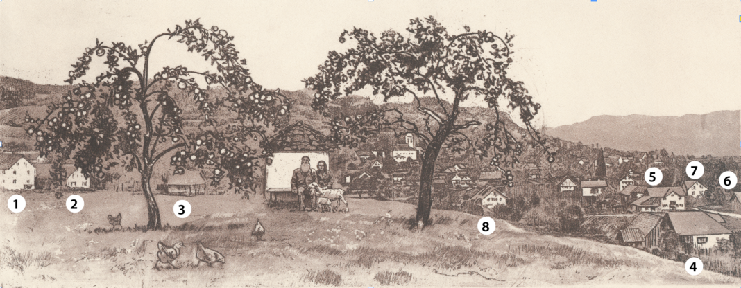 Die Dorfansicht Maurens ist von Prof. Zotow ziemlich realistisch gezeichnet, wie befragte Zeitzeugen bestätigten. Die Häuser sind gut erkennbar. Einige dieser Häuser stehen allerdings heute nicht mehr. Die gut erkennbaren Häuser sind beistehend nummeriert und mit den Namen der Besitzer versehen. Warum Zotow Mauren gerade von der Delehala aus gezeichnet hat, ist nicht bekannt, wahrscheinlich ihrer schönen Aussicht und Lage wegen. Als Prof. Zotow 1944 Mauren zeichnete, beherbergte die Kapelle einen grossen Schatz und einen der berühmtesten Kunstgegenstände Maurens: die Pietà. Von ihrer Bedeutung wusste damals noch niemand.