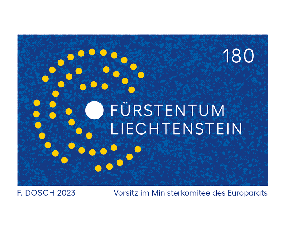Im Zusammenhang mit dem anstehenden liechtensteinischen Vorsitz im Ministerkomitee des Europarats fand am Montag, 13. November 2023 ein Anlass zur Vorstellung der Sonderbriefmarke im Liechtensteinischen Landesmuseum in Vaduz statt.