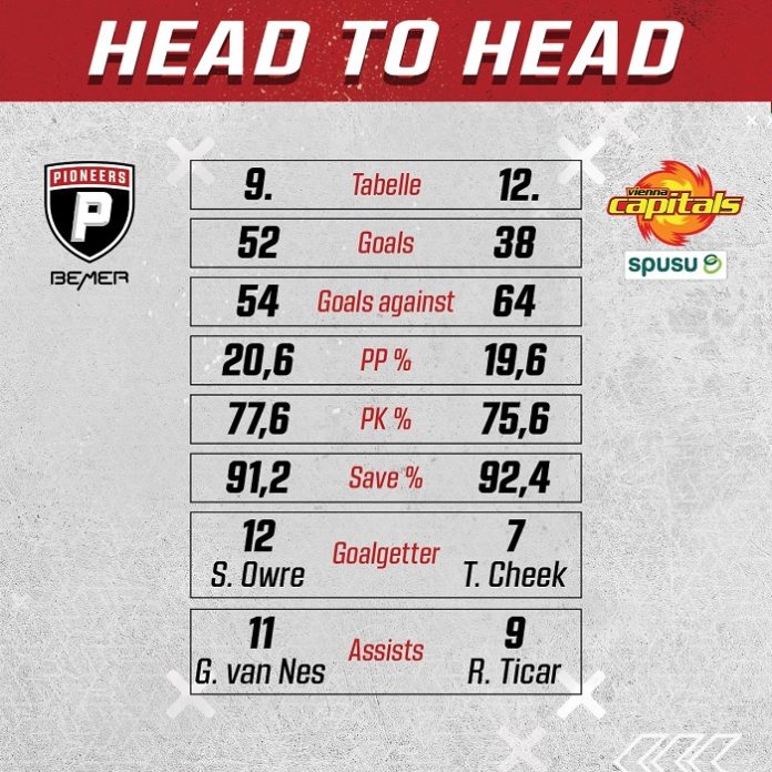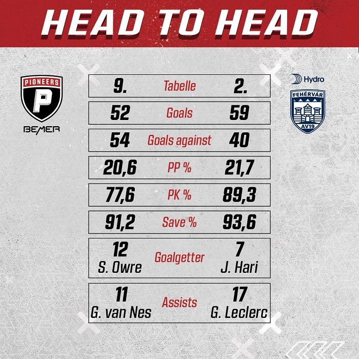 Die Pioneers haben beide bisherigen Duelle gegen die Vienna Capitals (4:6) und Fehervar AV19 (3:6) verloren. Doch das Team von Headcoach Stanley hat in den letzten Spielen bewiesen, dass es zurück in der Spur ist. Mit zwei aufeinanderfolgenden Heimsiegen gegen Villach und den KAC haben die Vorarlberger Selbstvertrauen getankt und sind bereit, sich erneut mit den starken Gegnern zu messen.