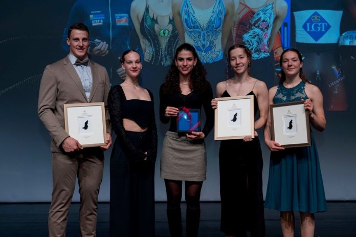 Am Sonntagabend, 10.Dezember 2023 gingen im SAL Schaan vor einer imposanten Kulisse die LLB Sport Awards über die Bühne. Zu Sportler des Jahres wurden gewählt: Nico Gauer, Nadina Klauser, Leila Marxer, Noemi Büchel (Artistic-Swimming Team) und Lorena Beck (Eisklettern) - Bild: Michael Zanghellini
