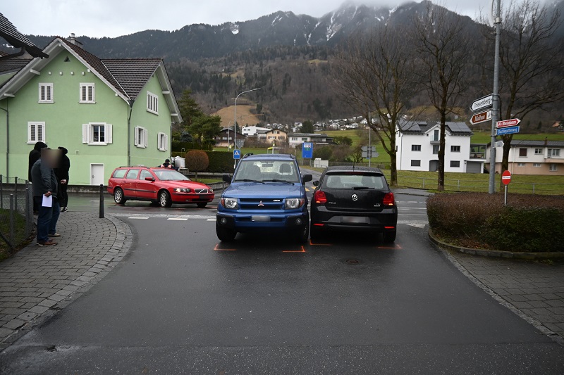 Gegen 11:10 Uhr fuhr eine Frau mit ihrem Fahrzeug auf der Feldstrasse talwärts, um anschliessend die Landstrasse zu queren und in die Nebenstrasse Bächlegatterweg einzufahren. Dabei kollidierte sie mit dem Personenwagen eines Mann, der auf der Landstrasse in südliche Richtung unterwegs war.