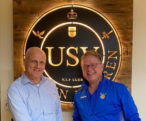 USV-Präsident Markus Kaiser und der neue Trainer der 2. Mannschaft, Roland Jäger (l.).