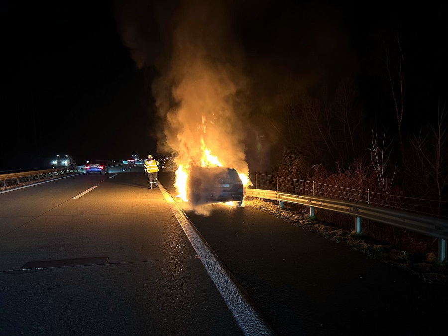 Sennwald -Am Montag (22.01.2024), kurz nach 06:20 Uhr, hat auf der Autobahn A13 ein Auto Feuer gefangen. Die Feuerwehr konnte den Brand löschen. Das Auto erlitt Totalschaden.