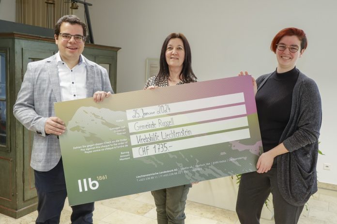 Spendenübergabe der Gemeinde Ruggell an die Krebshilfe Liechtenstein. Von links: Vorsteher Christian Öhri, Marin Leal und Tatjana Büchel.