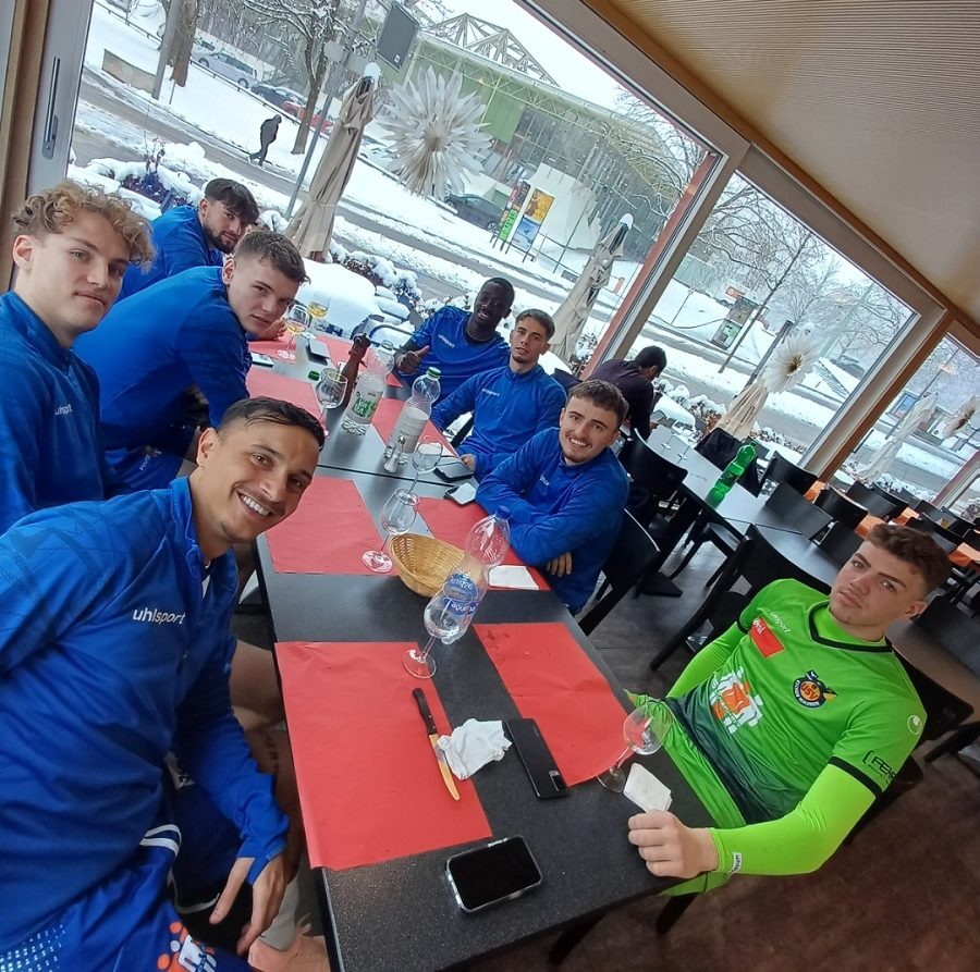 Die Vertreter des FC USV bei einer Zwischenverpflegung am Sonntag beim St. Galler Hallenturnier.