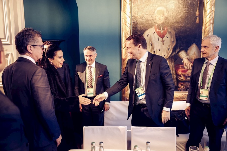 Regierungsrätin Dominique Hasler mit dem polnischen Aussenminister Radoslaw Sikorski. Foto: IKR