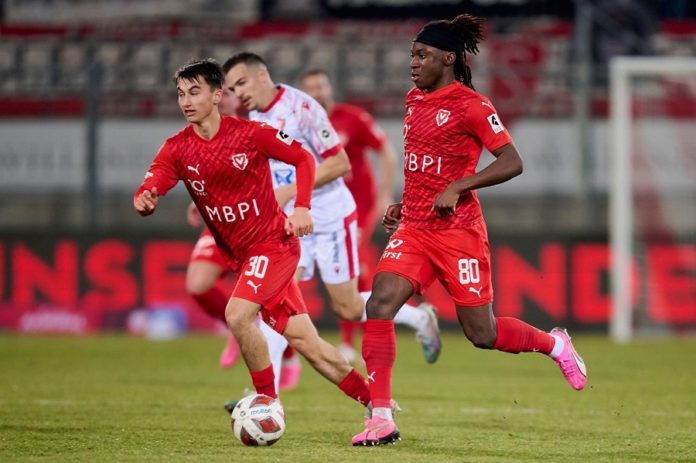 Spielszene von heute Abend zwischen dem FCV und dem FC Sion. Vorne von links Théo Golliard (Nr.30) und Ryan Fosso (Nr.80). Foto: Michael Zanghellini.