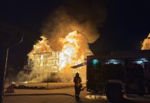 Leerstehendes Hotel im Vollbrand