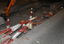 Kollision mit Baustellenabsperrung und eilig unterwegs!