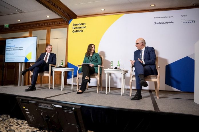 Im Anschluss folgte eine Podiumsdiskussion mit dem Deutschen Bundesminister für Digitales und Verkehr Volker Wissing zum Thema „Welche Chancen bieten digitale Lösungen den Ländern Europas?“. Abgerundet wurden das Impulsreferat und das Gespräch der beiden Minister durch eine wissenschaftliche Einschätzung von Axel Müller-Groeling, Vorstandsmitglied der Frauenhofer-Gruppe.
