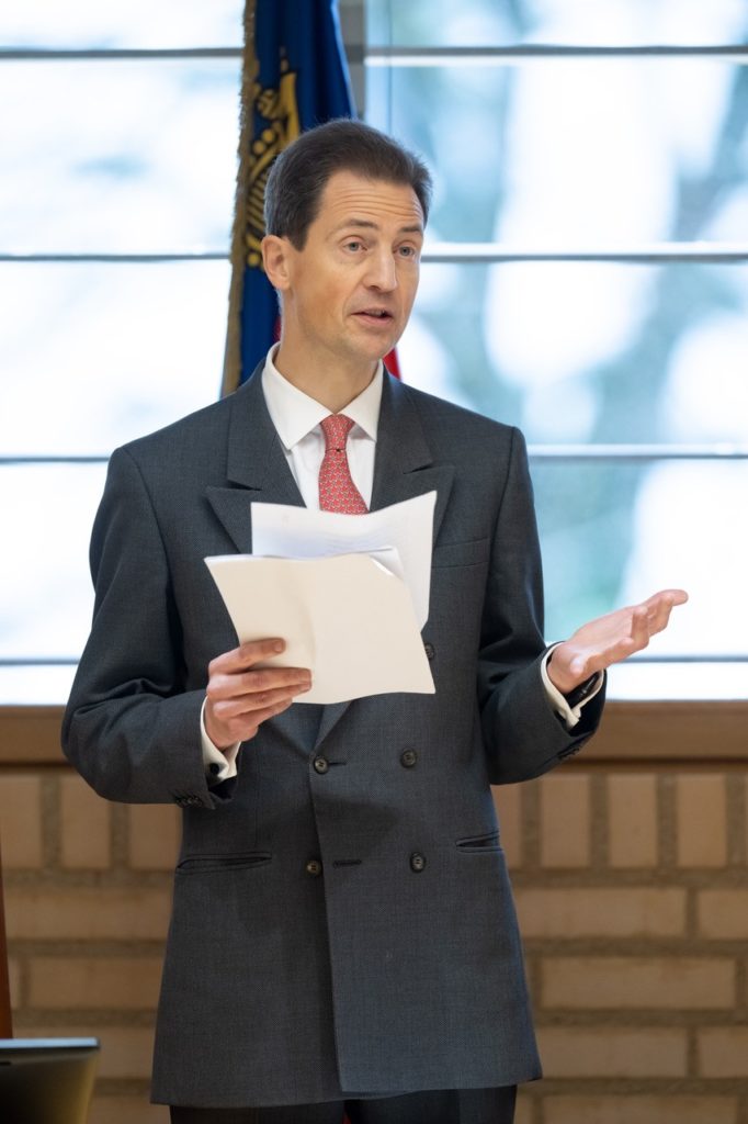 In dieser Legislaturperiode werden wir noch einige für die Zukunft wichtige Weichen stellen müssen. Lassen Sie uns unser Land dabei sicher durch die stürmische Zeit führen und zuversichtlich sein. Denn dort, wo es Herausforderungen gibt, gibt es immer auch Lösungen, und Herausforderungen bieten immer auch Chancen. Für Ihre verantwortungsvolle Aufgabe wünsche ich Ihnen viel Kraft, Weisheit und Gottes Segen!»