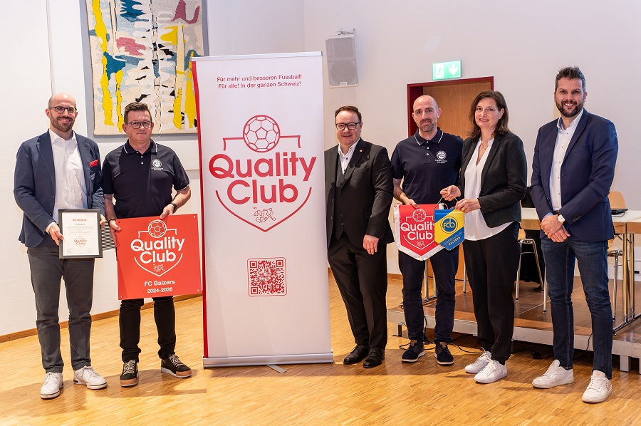 Im Anschluss an seine Generalversammlung vom 20. März 2024 ist der FC Balzers als erster Fussballverein Liechtensteins mit dem Label «SFV Quality Club» ausgezeichnet worden. Die Zertifizierung durch den Schweizerischen Fussballverband (SFV) würdigt die vorbildliche Vereinsarbeit des FC Balzers in den Bereichen Cluborganisation, Nachwuchsförderung und Breitensport.