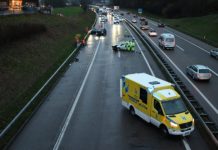 Kollision mit sechs beteiligten Fahrzeugen auf Autobahn