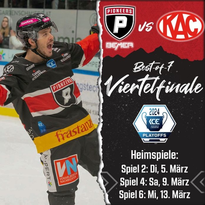 Die Viertelfinalpaarungen der win2day ICE Hockey League stehen fest. Der EC-KAC, der als Tabellenführer nach dem Grunddurchgang als erstes seinen Gegner wählen durfte, entschied sich für die Pioneers. Das Team von Dylan Stanley wird bereits am Sonntag zum ersten Viertelfinalspiel nach Klagenfurt reisen.