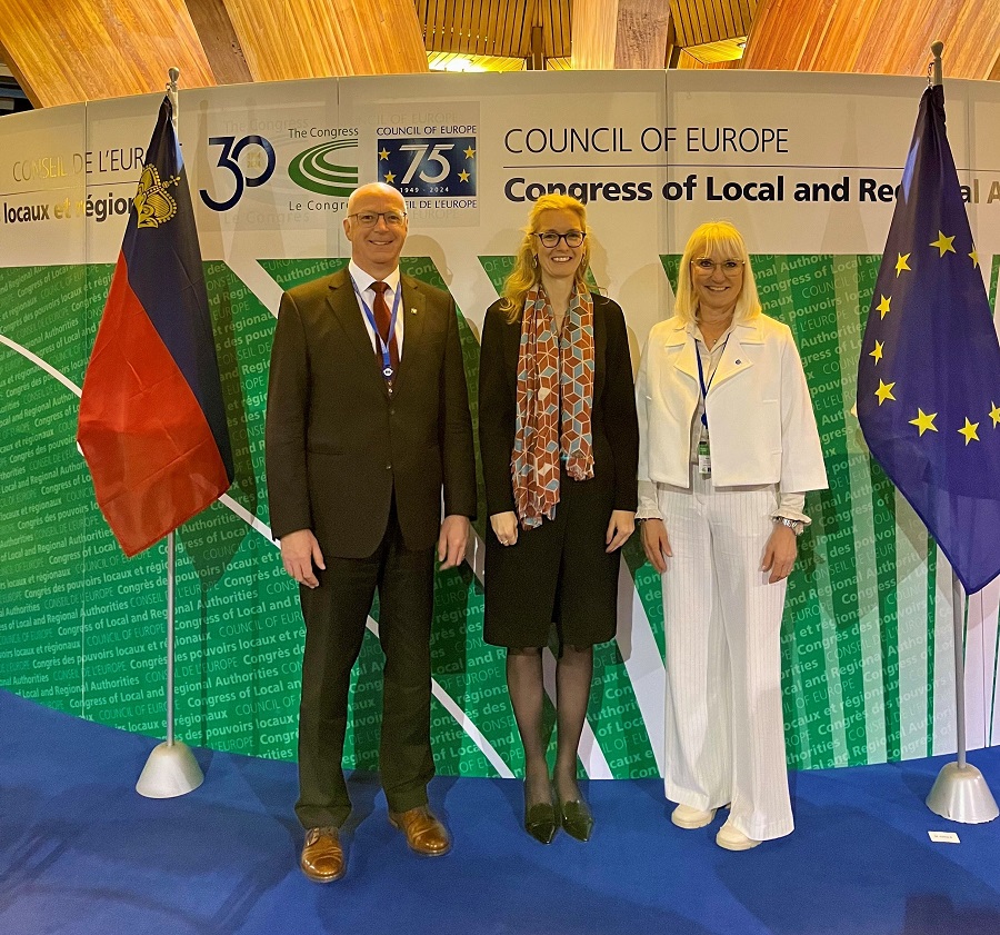 Bild: Regierungschef-Stellvertreterin Sabine Monauni mit Rainer Beck und Daniela Erne, Liechtensteins Vertreter/in im Kongress der Gemeinden und Regionen des Europarats. IKR
