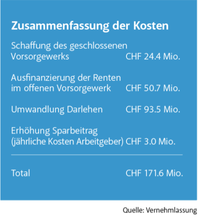 Die Pensionskassenbeiträge werden vom Arbeitnehmer und Arbeitgeber eingezahlt. Im Gewerbe bezahlen der Arbeitnehmer und Arbeitgeber meist je 4 Prozent vom versicherten Lohn ein, total 8 Prozent. Bei den Staatsangestellten sieht die Regierung wesentlich höhere Beiträge vor. Neu wären die Pensionskassenbeiträge je nach Jahrgang zwischen 18 und 24 Prozent. Für viele Gewebebetriebe sind derart hohe Beitragsleistungen unmöglich finanzierbar.