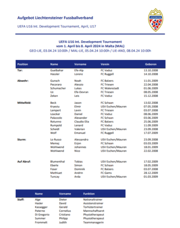 April 2024, 10.00 Uhr: Malta – Liechtenstein