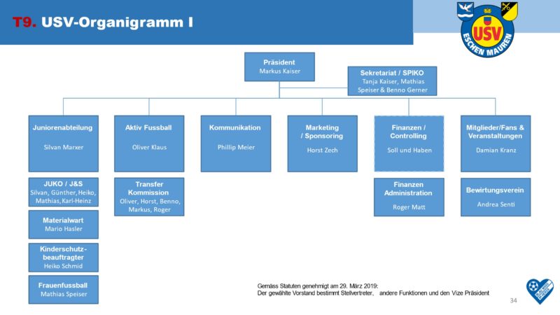 Mit der Verpflichtung eines Leiters Spielbetrieb und Nachwuchs-Koordinator plant der Verein in die Zukunft. «Präsident Kaiser:» Die meisten im Vorstand und im Umfeld arbeiten ehrenamtlich; viele Aufgaben (wie z.B. Spiko, Spielpläne, Einteilungen, Finanzen, Veranstaltungen, Turniere, usw.) konnten wir nicht mehr in der nötigen Zeit und der Qualität erledigen, die unseren Ansprüchen genügen. Auch die Auflagen rund um die Juniorenabteilung und Vorgaben vom SFV werden immer aufwändiger und komplexer. Um die Zukunft des Vereins langfristig abzusichern, haben wir uns entschlossen mit Mathis Speiser eine Persönlichkeit im Verein zu binden, der ein top Anforderungsprofil und langjährige Trainererfahrung im Spitzenfussball vorzuweisen hat. Mathias besitzt ein UEFA-B Youth Trainerdiplom (Nachwuchs Leistungsfussball) und trainiert zurzeit zusammen mit Riccardo das Junioren-C-Team.“