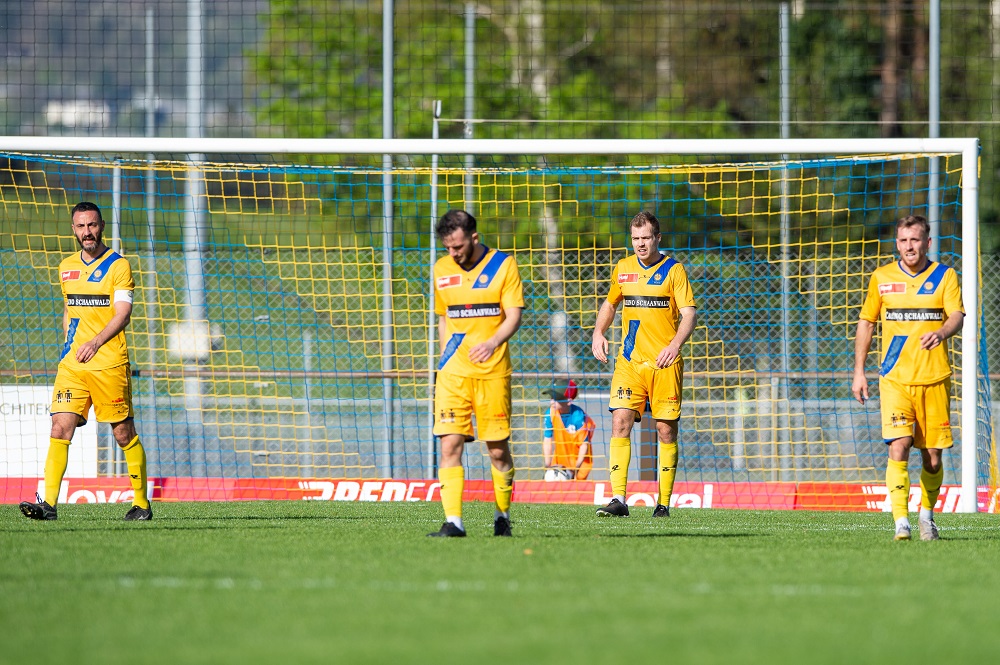 Der Tabellenführer Juventus Zürich wurde heute in Balzers echt gefordert. Bis zur 94.Minute stand die Partie 1:1, dann kassierten die Platzherren ein weiteres Tor nach Elfmeter -entscheid und verloren kurz vor Schluss recht unglücklich, wie man an den Gesichtern der Balzner sehen kann. Foto: Jürgen Posch
