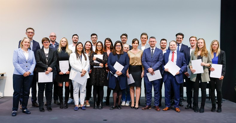 Bild: Absolventinnen und Absolventen des Zertifikatstudiengangs Compliance-Officer mit Professorin Dr. Alexandra Butterstein (Bild Uni)