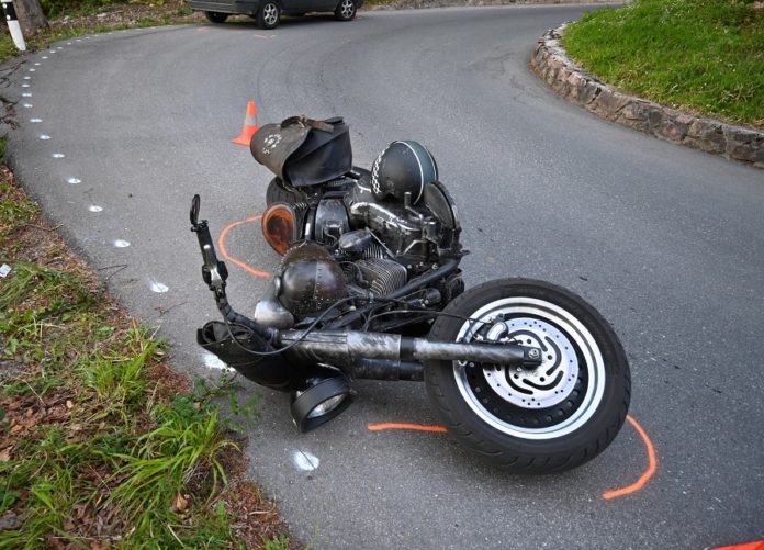 Verkehrsunfall in Triesenberg. Motorradfahrer wurde am Fuss schwer verletzt.