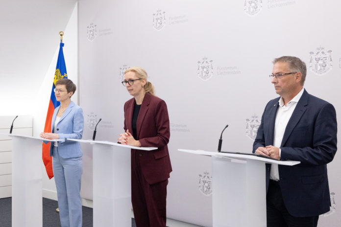 Wirtschaftsministerin Sabine Monauni, Brigitte Haas, Geschäftsführerin der Liechtensteinischen Industrie- und Handelskammer, sowie Ivan Schurte, Mitglied der Geschäftsleitung der Wirtschaftskammer Liechtenstein, haben am Mittwoch, 8. Mai 2024 den Bericht der Arbeitsgruppe „Arbeitskräftemangel“ betreffend Massnahmen zur Erhöhung des Arbeitskräftepotenzials und der Erwerbsbeteiligung vorgestellt.