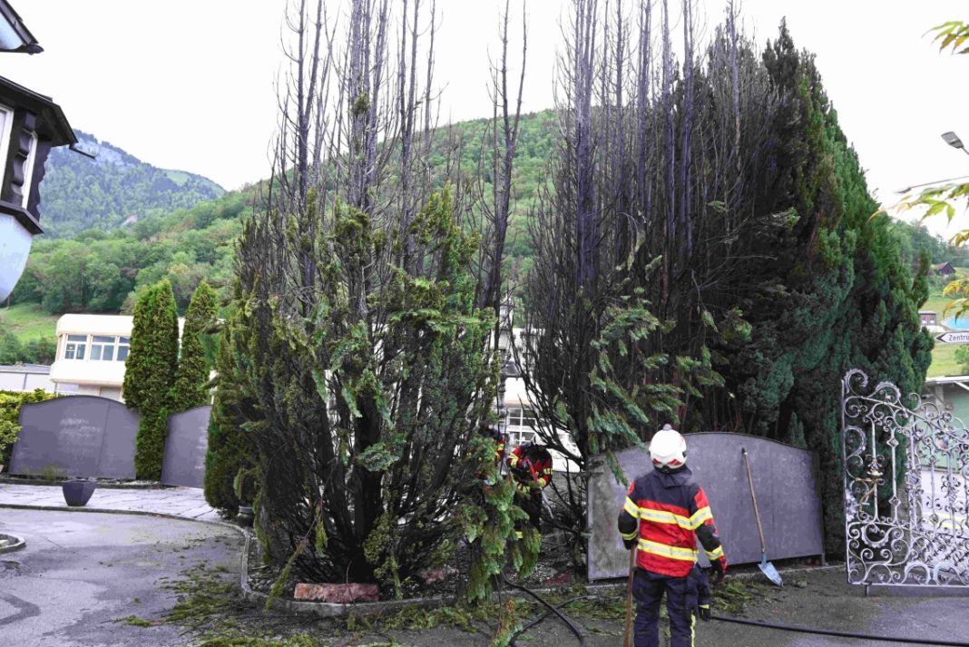 Eine Auskunftsperson meldete der Kantonalen Notrufzentrale einen Brand von Zypressen. Die ausgerückte Feuerwehr konnte den Brand der mehreren Meter hohen Zypressen rasch löschen. Als Brandursache steht das Verbrennen von Unkraut mit einem Gasbrenner im Vordergrund. Es entstand Sachschaden von rund 15’000 Franken. Im Einsatz standen nebst mehreren Patrouillen der Kantonspolizei St.Gallen die örtliche Feuerwehr mit rund 30 Angehörigen.