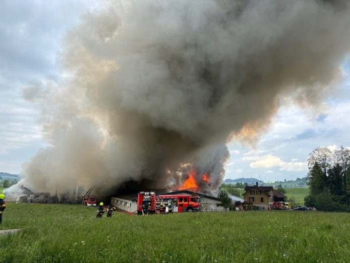 Gossau – Am Mittwoch (08.05.2024), kam es um 17 Uhr im Bereich Höfrig in Gossau zu einem Brand von zwei Schweineställe, wie die Kantonspolizei St. Gallen eben meldet.