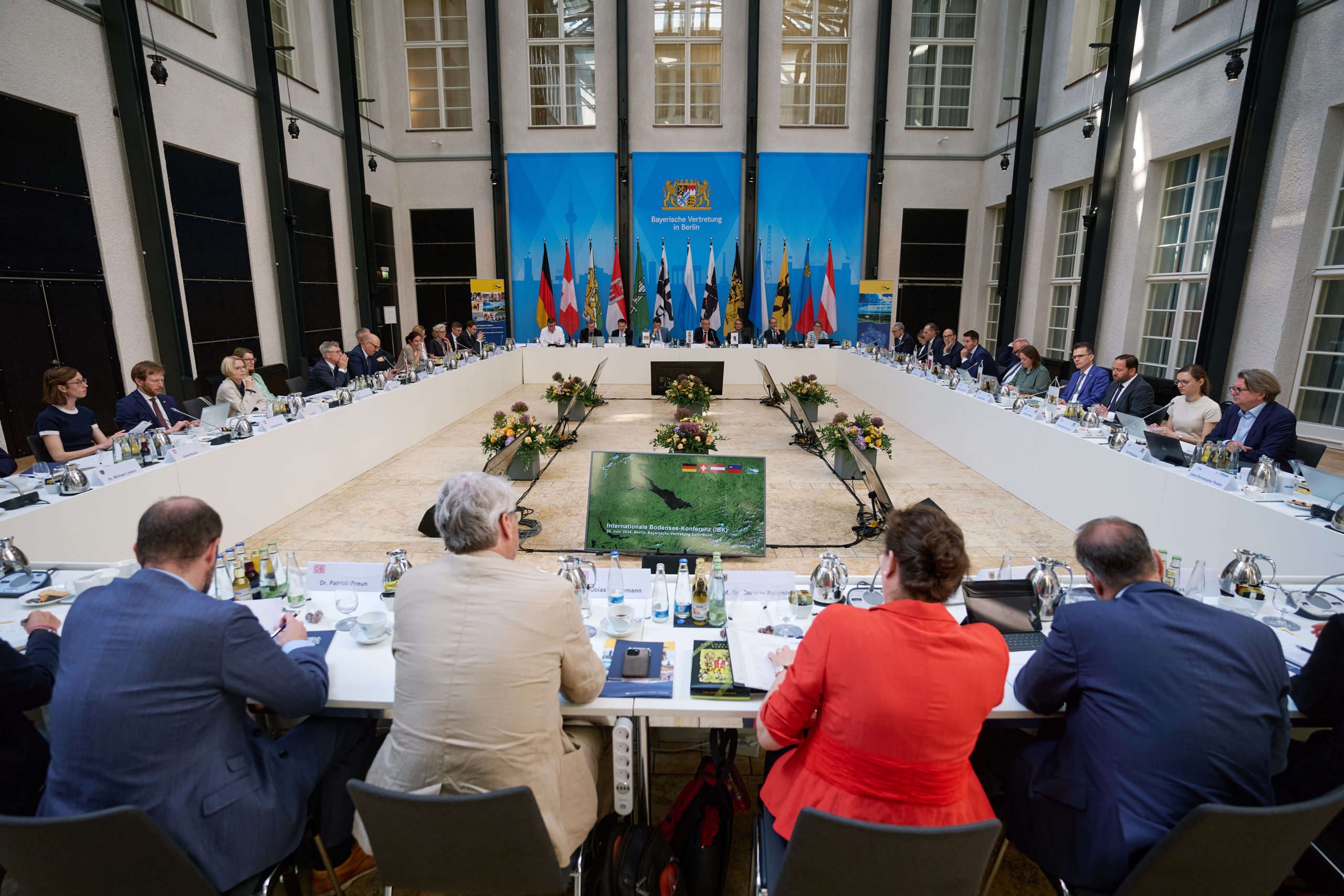 Berlin, 28.06.2024 – Heute, am 28. Juni, trafen sich die Regierungschefs und -vertreter der Internationalen Bodensee-Konferenz (IBK) in der Bayerischen Vertretung in Berlin mit Vertretern des Bundesministeriums für Verkehr und Digitales und der Deutschen Bahn zu einer Sitzung. Die Regierungschefs forderten bessere Abstimmungsprozesse bei der Planung des öffentlichen Verkehrs in der Bodenseeregion.
