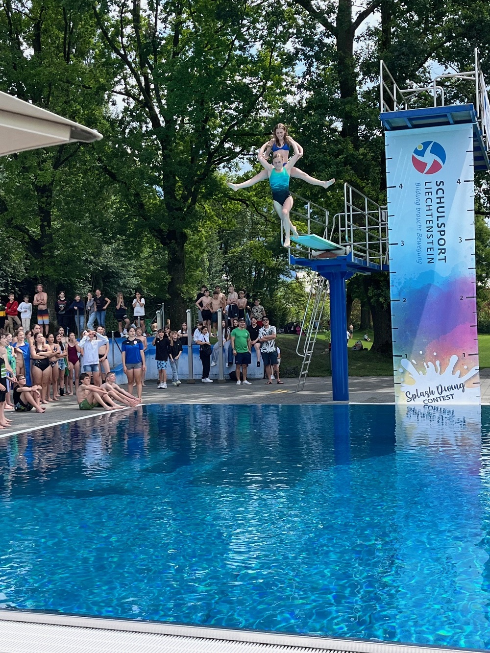 Am Dienstag und Donnerstag fanden im Freibad Mühleholz in Vaduz zwei gelungene Anlässe im Rahmen des Schulsportangebots Liechtenstein statt. Bei sommerlichem Wetter konnten der Rutschevent und das Turmspringen durchgeführt werden. Insgesamt 170 Kinder und Jugendliche sowie rund 700 Zuschauerinnen und Zuschauer waren mit viel Begeisterung dabei.