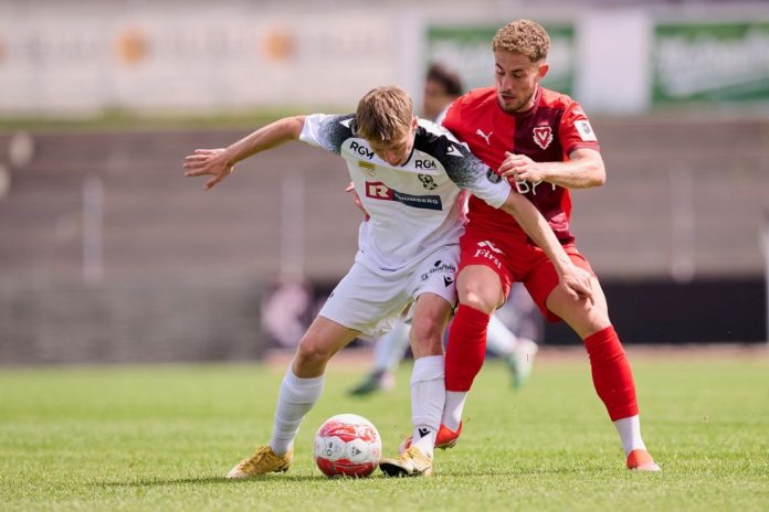Testspiel am 29.6.2024 in Bregenz gegen SW Bregenz,2-3-Sieg für Vaduz. Bild (Mischa Eberhard,FCV,r.) Foto: Michael Zanghellini