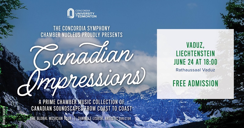Vaduz – Das Kammerorchester Nucleus der kanadischen Partneruniversität Concordia University of Edmonton tourt derzeit durch Europa und macht Station in Vaduz. Nach einem Besuch der Universität Liechtenstein und dem Zusammentreffen mit Vertreterinnen und Vertretern des Rektorats und der Schools, findet das Konzert im Rathaussaal Vaduz statt, zu dem die Bevölkerung herzlich eingeladen ist.
