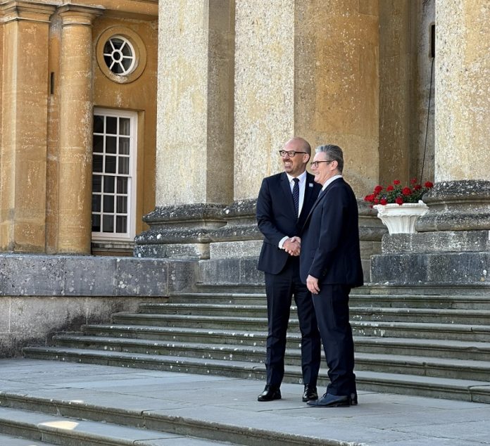 Keir Starmer, Premierminister von Grossbritannien, begrüsst Regierungschef Daniel Risch im Blenheim Palace. ikr