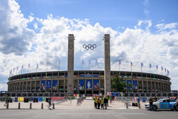 EM 2024: Im Olympiastadion wird am kommenden Sonntag, 14.Juli um 21 Uhr das Fussball-Europameisterschaftsfinale ausgetragen. Foto: Picture Alliance, Frankrurt/Main.