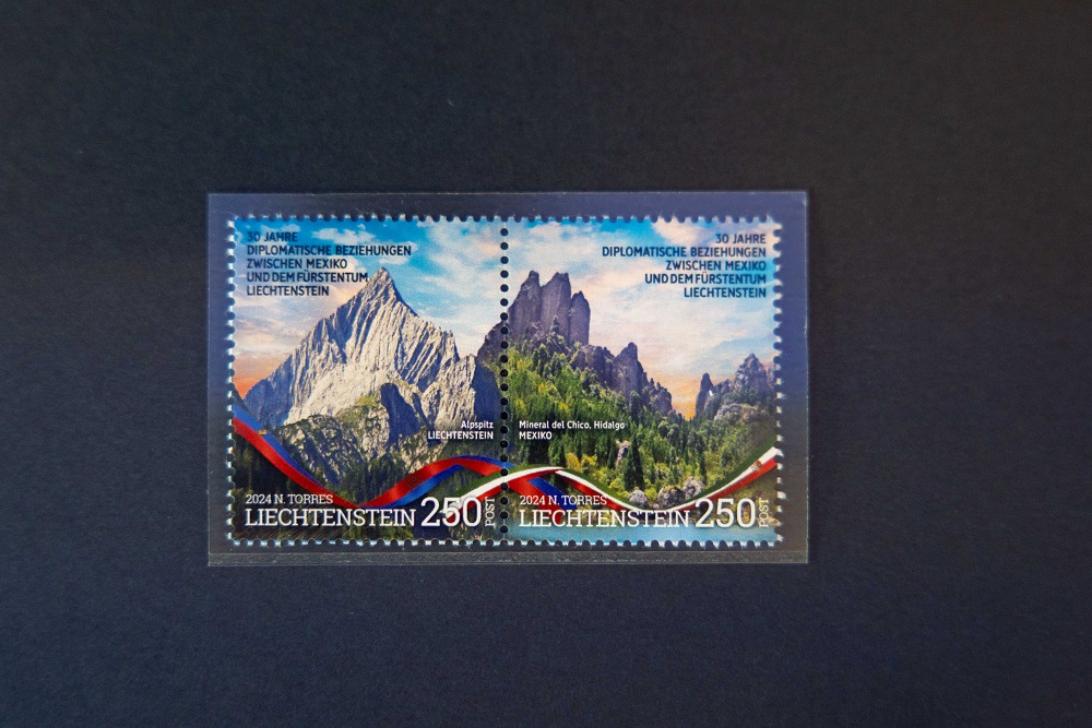 Speziell gewürdigt wurde an diesem Anlass die Veröffentlichung der Gemeinschaftsbriefmarke, welche in Kooperation zwischen der Philatelie Liechtenstein und der mexikanischen Postbehörde entstanden ist. Roland Seger, CEO der Liechtensteinischen Post, hob den hohen Symbolgehalt der Motive auf der Gemeinschaftsbriefmarke hervor; der Alpspitz in Liechtenstein einerseits und der Mineral del Chico in Hidalgo, Mexiko, andererseits, seien aussagekräftige Metaphern für den Weg der Diplomatie, wobei die Gipfel den Höhepunkt des gegenseitigen Verständnisses und der Zusammenarbeit darstellen.