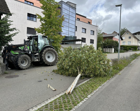 Gegen 13:30 Uhr fuhr ein Traktor auf der Nebenstrasse ‚Wegacker‘ talwärts in Richtung Peter-Kaiser-Strasse. Dabei kam es zu einem Selbstunfall.