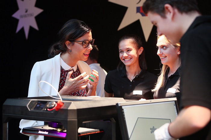 Foto: Bildungsministerin Dominique Hasler beim Besuch von Berufs-und Bildungstagen.