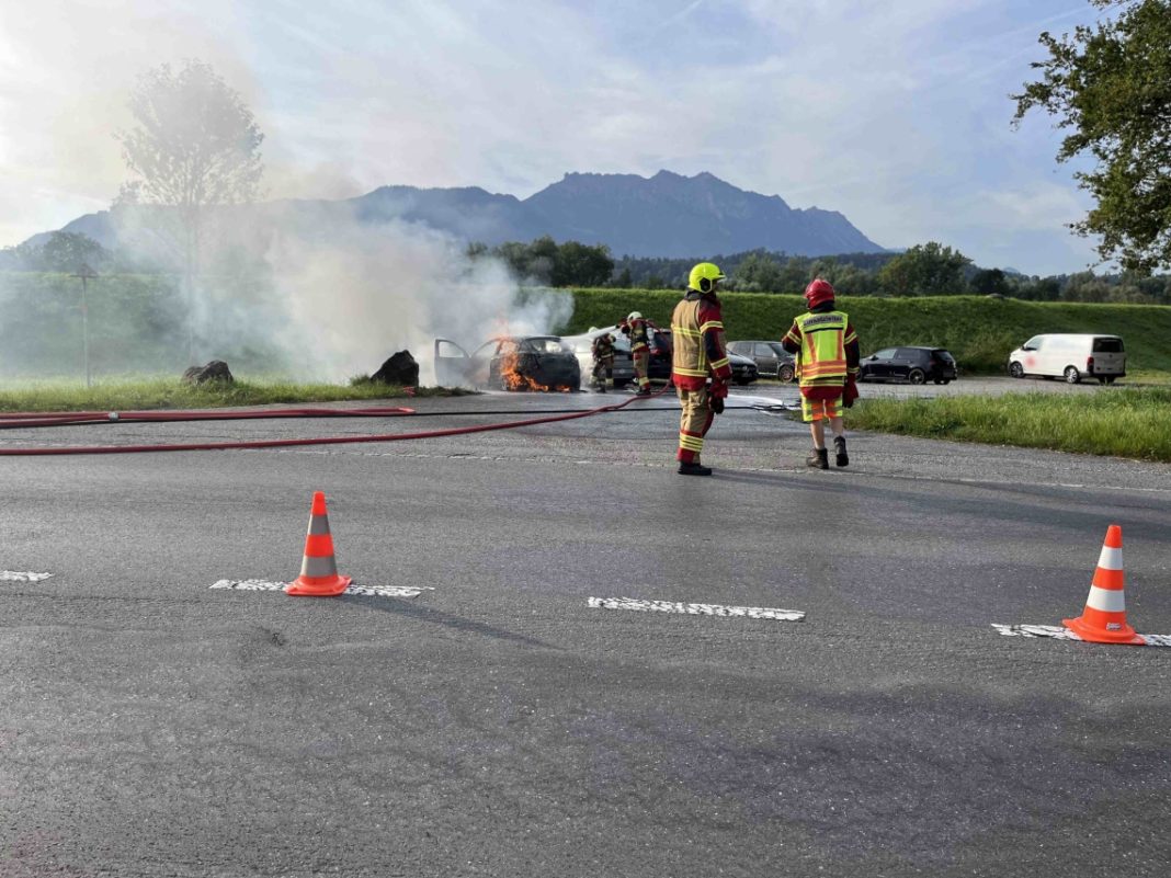 Am Mittwoch (07.08.2024), kurz nach 08:05 Uhr, ist es an der Staatsstrasse auf einem Parkplatz zu einem Brand eines Autos gekommen. Die Feuerwehr konnte den Brand rasch löschen. Durch den Brand wurde niemand verletzt. Es entstand Sachschaden von rund 70’000 Franken. Als Brandursache steht ein technischer Defekt im Vordergrund.