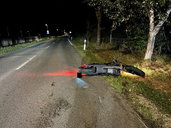 Kurz nach Mitternacht verlor ein Mann auf der Rietstrasse in Mauren infolge eines Bremsmanövers die Herrschaft über sein Motorrad. In der Folge kollidierte er mit dem Randstein ein Verkehrsteilinsel und stürzte. Der Zweiradfahrer wurde verletzt, am Fahrzeug entstand Sachschaden.