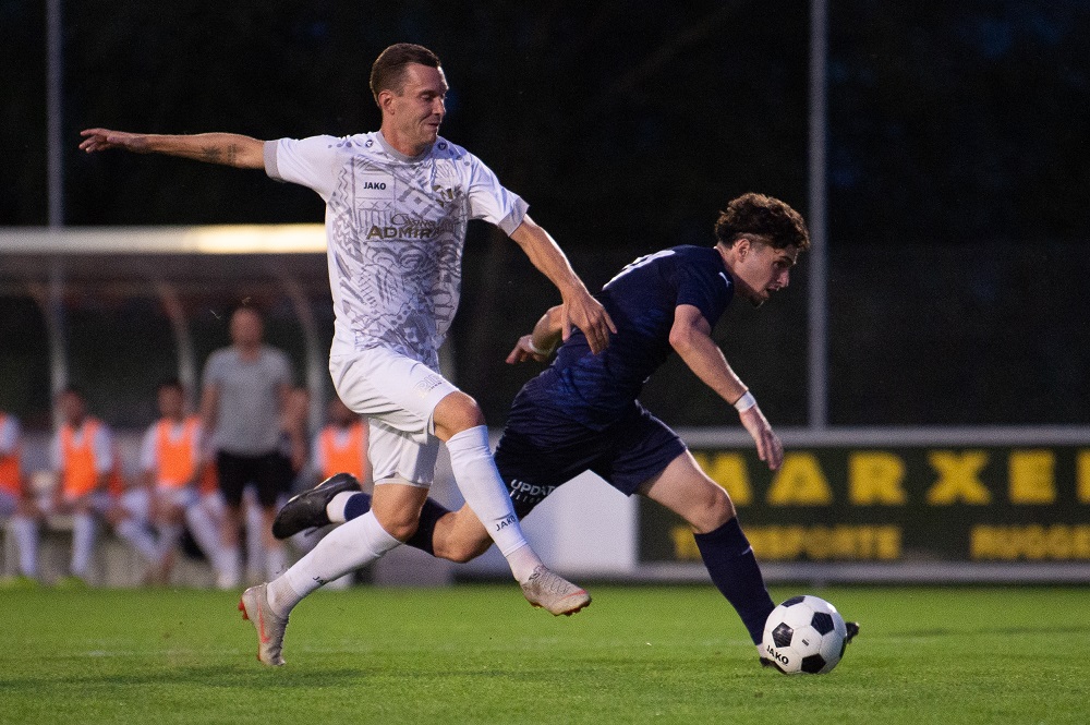 Morgen empfängt der FC Ruggell den FC Steinach. Unser Archivbild zeigt Scherrer (FCR) gegen Luque (FCV).