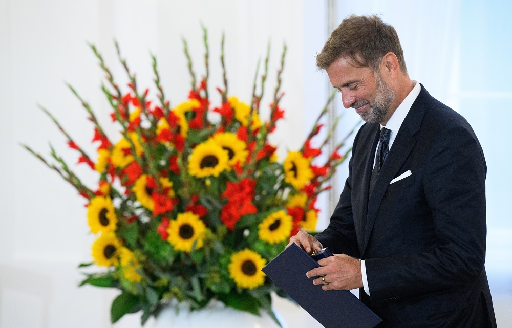 Jürgen Klopp, hier bei der Ehrung beim deutschen Bundespräsidenten Walter Steinmeier am 1. Oktober 2024. Foto: Picture Alliance., FFM